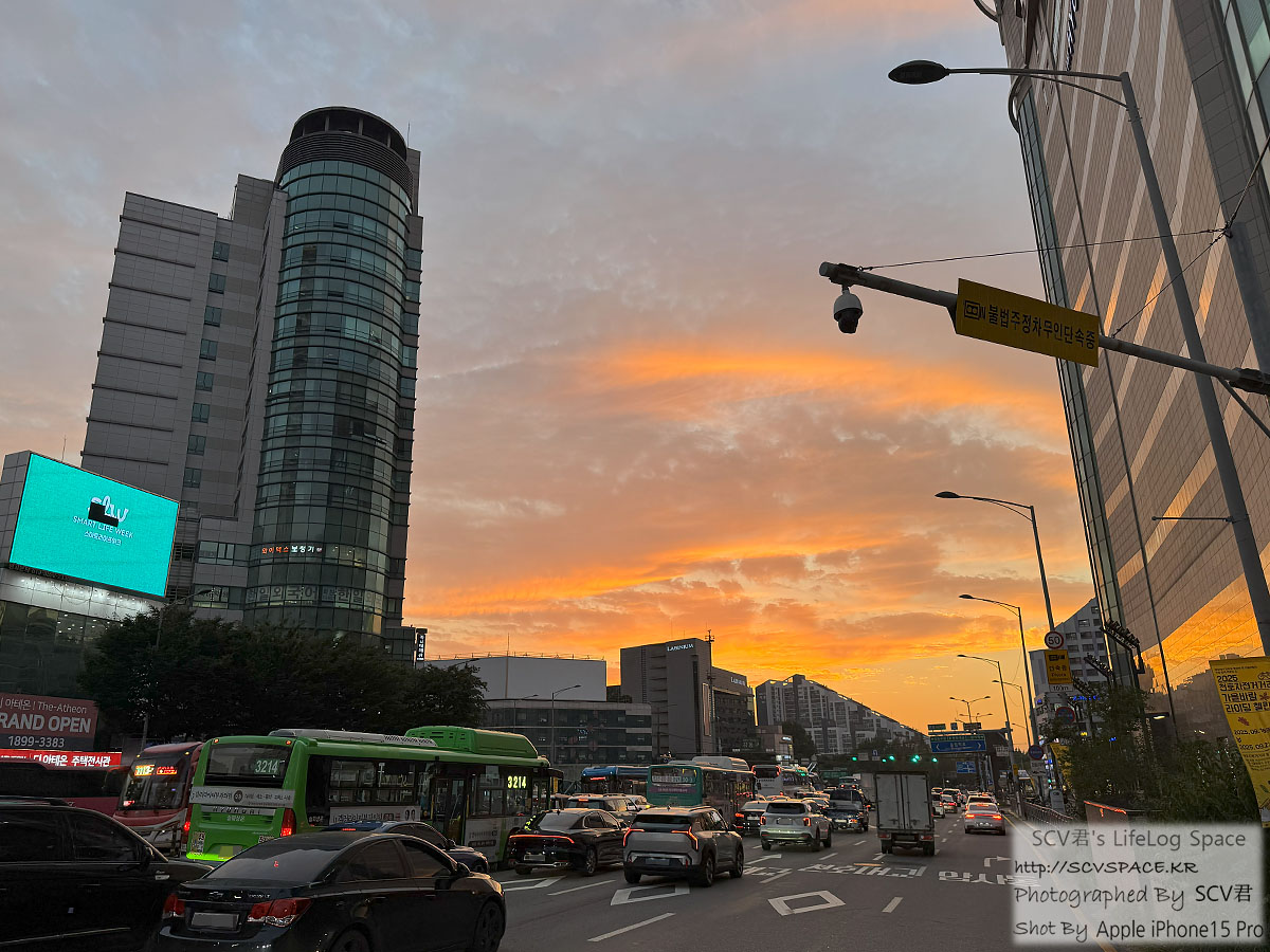 퇴근길에 밥먹으려고 집근처에 왔는데, 하늘 색이 꽤 예뻐서 한컷. 천호사거리 못미쳐서 있는 버스 중앙차로 정류장쪽 위치.