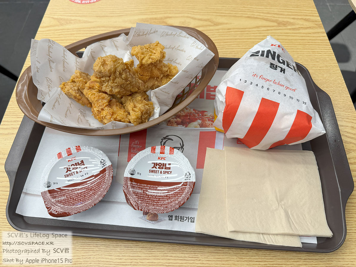 하나는 남아서 냉장고에서 찍어먹을 무언가를 기다리고 있습니다. 아마 다른 KFC 제품이 되지 싶긴 한데..(..