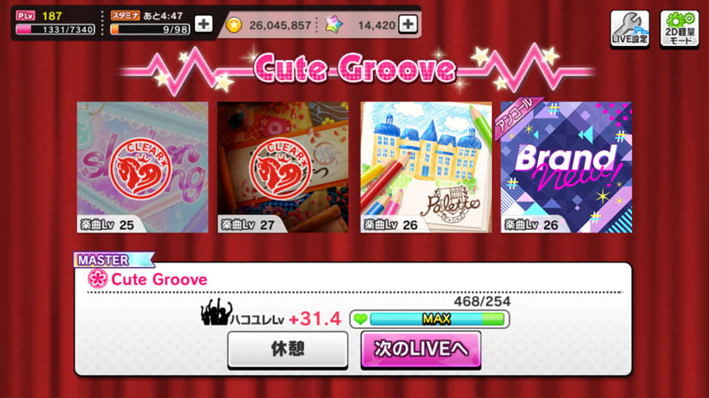 서버가 골라준 어느 날 MASTER 레벨의 Cute Groove 곡들 (스타라이트 스테이지)