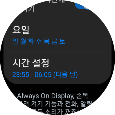 워치는 폰 AOD처럼 켜지고 꺼지는 시간을 지정할 수 있는게 아니라서 말이죠.