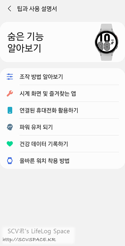 폰 쪽에서 기본 관리화면이 나올때쯤 되면, 워치에도 기본적인 제스처를 학습시켜주는 안내문이 뜨게 됩니다.