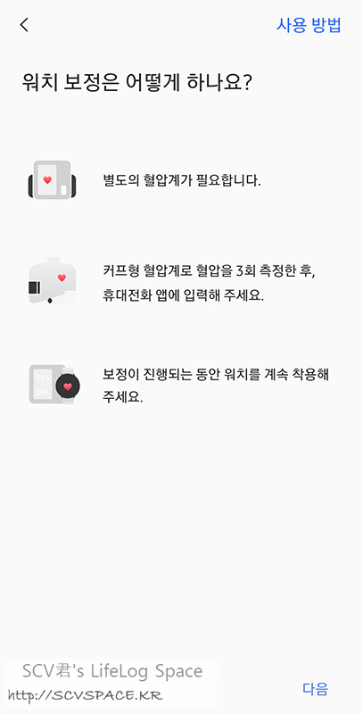 이걸 가지고 워치4에서 가이드하는 대로 보정작업을 진행하면 됩니다.