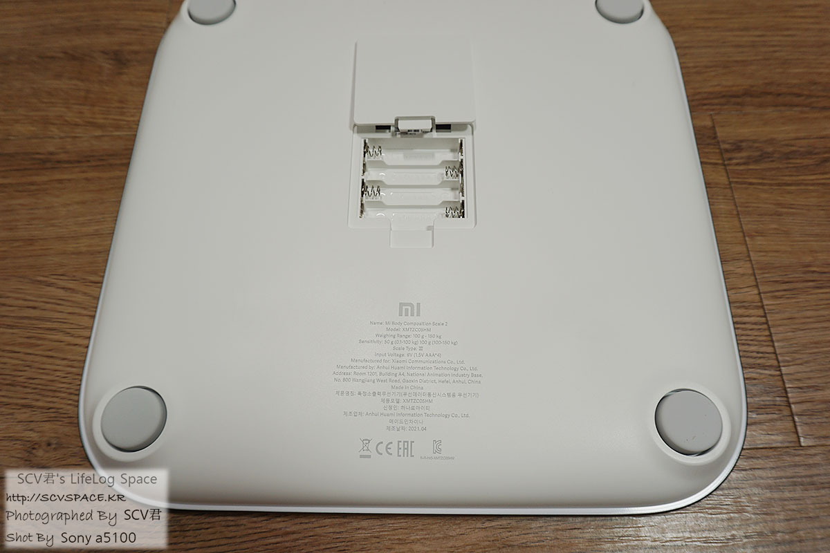 제품을 뒤집으면 나오는 커버를 열면 AAA 배터리 4개를 넣는 부분이 있습니다.