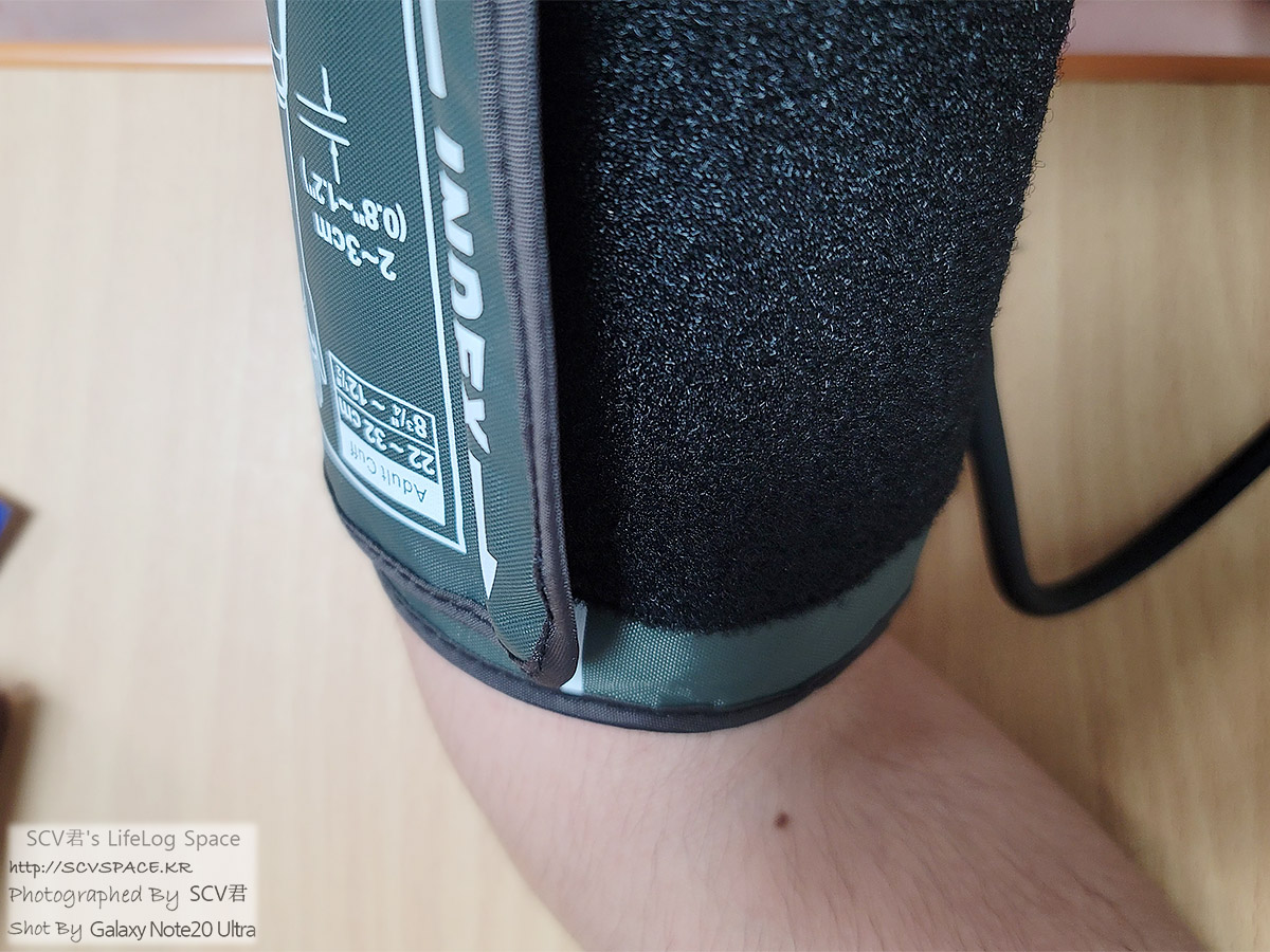 위치 잘 잡고, 호스가 꼬이지 않게 주의하며 고정시킬 때는 커프로 팔을 두른다는 느낌으로(너무 꼭 조이지 말고) 차는게 핵심 같습니다. 너무 조이면 측정에 오차가 발생할테니.