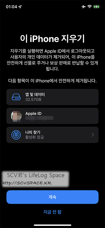 늦어도 2주 이내에 중고판매할 예정이라 아예 활성화 잠금도 끄고 싹 초기화했습니다.