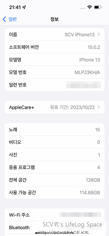 저기 애플케어+ 정보도 잘 뜨고, 기본용량도 제대로 128GB. 간만에 꽤 널널한 iOS 기기를 쓰겠습니다. (지금까지 쓴 아이폰/아이패드 64GB)
