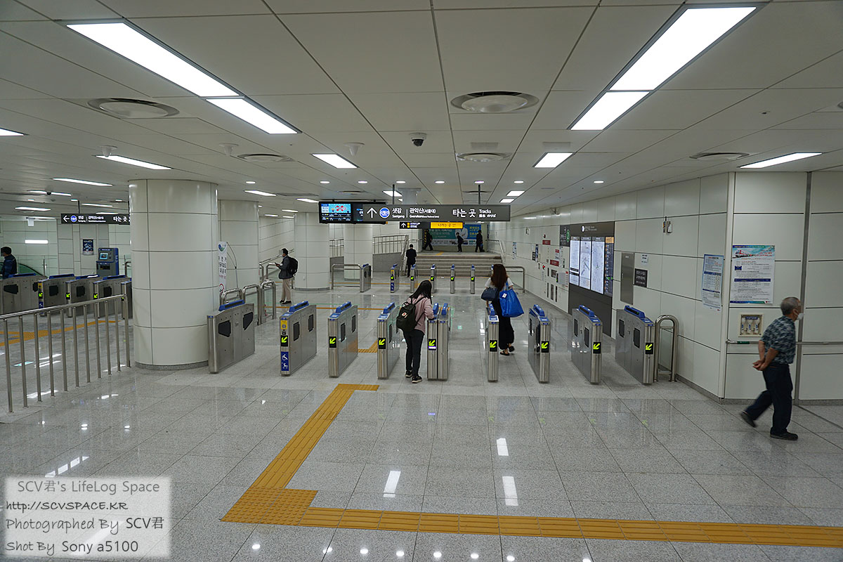 이쪽 개찰구는 따로 비용이 발생하지 않는 환승통로입니다. 2호선에서 넘어온다면 오른쪽 통로를 통해 이리로 오겠죠.