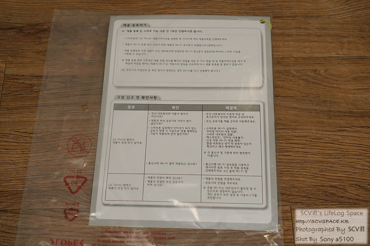 제품 앞쪽에 붙어있던 비닐에는 사용설명서류가 들어있습니다.