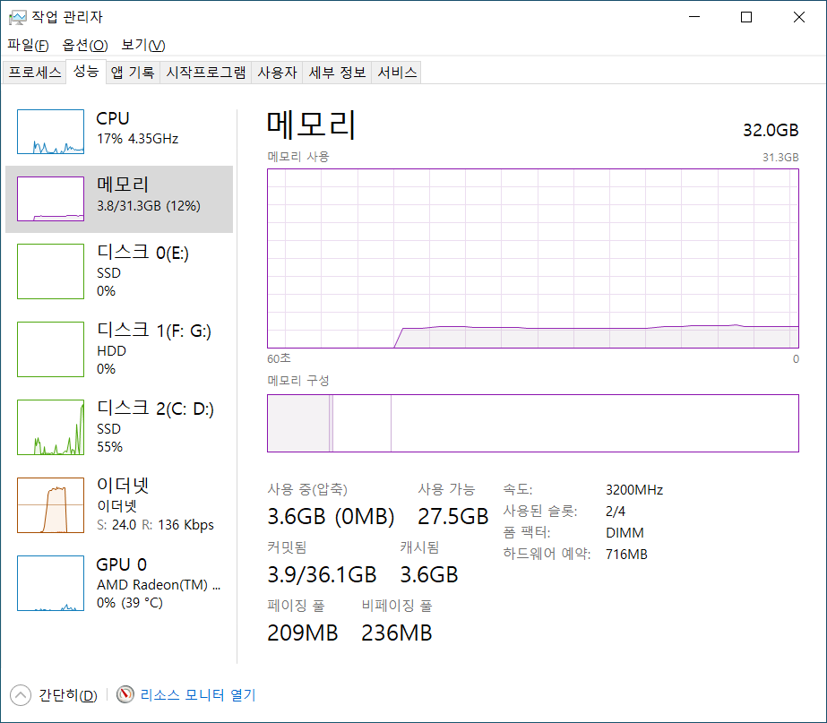 데스크탑을 2021년 초에 조립했는데, 2021년의 저는 16GB RAM 만으로도 RAM 부자였습니다.