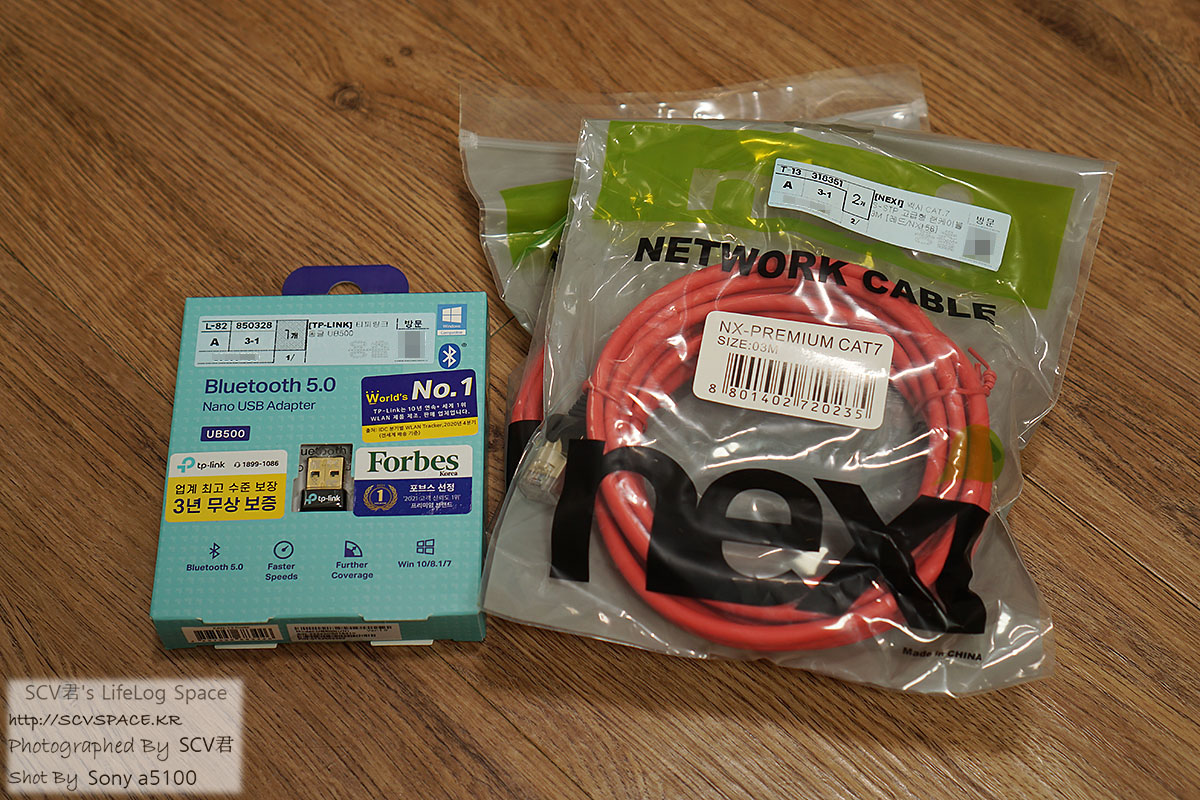 다음은 NEXI Cat.7 LAN 케이블(3M)과 TP-Link UB500 블루투스 동글. [케이블 다나와, 블루투스동글 다나와]