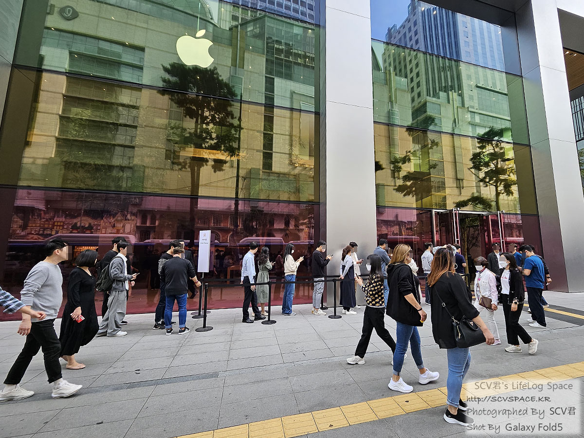 발매 첫날 아침 애플스토어 특유의 들뜬 분위기는 예전에 영상으로만 몇번 봤습니다만, 시간이 늦어 그정도까진 아니어도 조금 평소랑 다르게 꾸며둔 부분을 볼 수 있었던건 즐거웠네요.