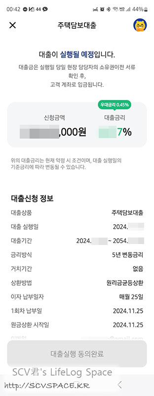 다만 지금은 말 그대로 대출 약정만 한거고, 실행은 잔금일에 이것저것 확인하고 나서 이체됩니다.