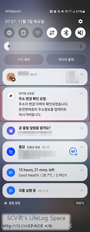자주 있는일은 아니라서 남겼습니다. (내년 운전면허 갱신때는 아예 주소가 바뀐 면허증이 나올테고)