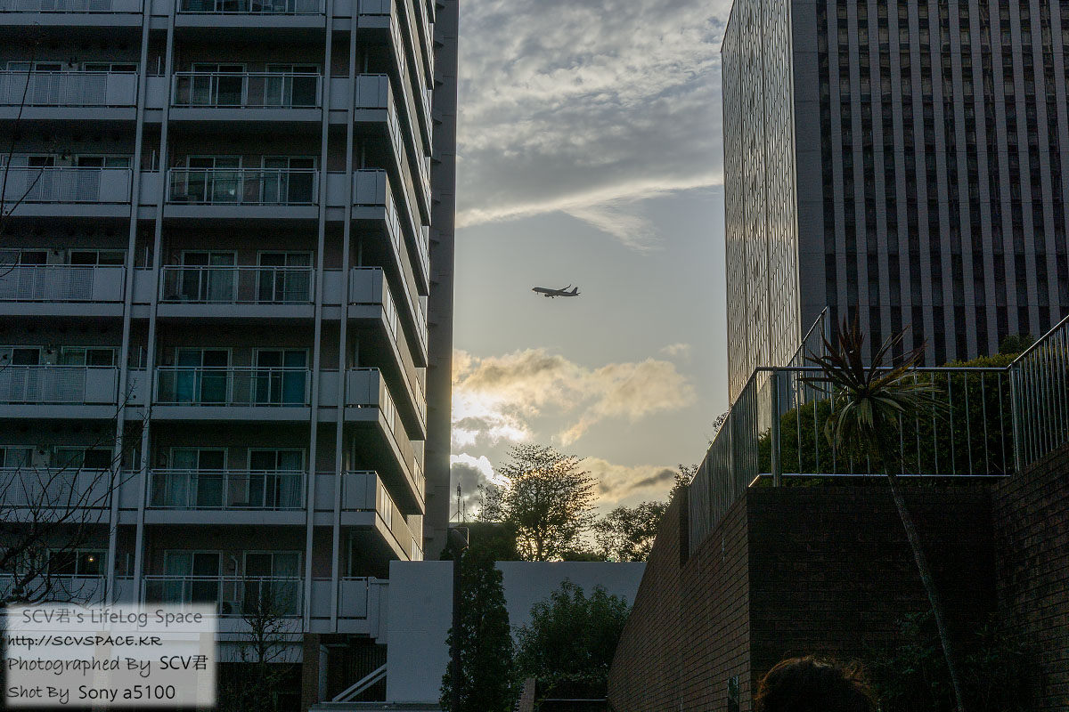 그렇게 역에서 나와 호텔 가고 있는데 건물 사이로 항공기 지나가는게 보여서 한컷.