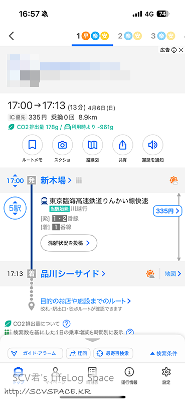 이제 이 열차는 곧 종점인 신키바역에 진입합니다.