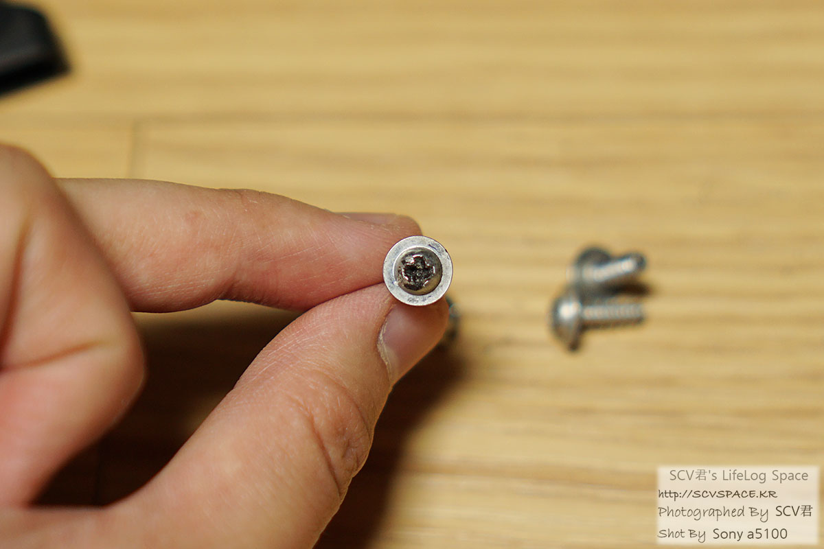 그래서인지 먼저 장착되어 있던 나사를 보면 나사산이 절반 이상 파여 잘 돌아가지도 않는게 절반이 넘더군요.