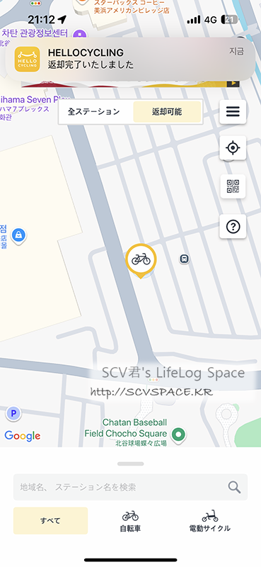 다행히 아까 대여 자전거 없어졌다고 했던 가까운 스테이션에 딱 한대 돌아왔더군요.