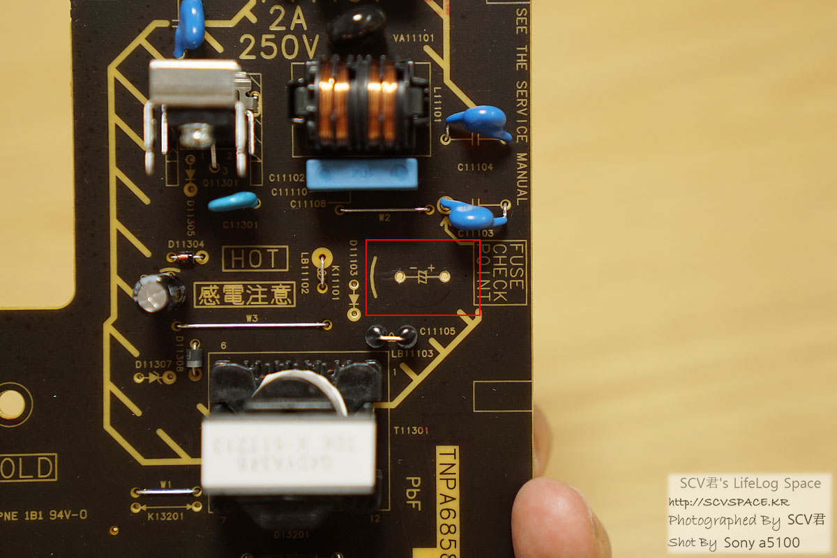전면 디스플레이를 고정하는 프레임 위쪽도 같이 빼셔야 전원부 기판 분해가 쉬울 겁니다. 안그러고 하려니 뺄때 걸리는게 많던.